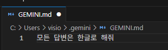 - gemini.md 파일에 원하는 옵션 넣고 저장(ctrl+s)